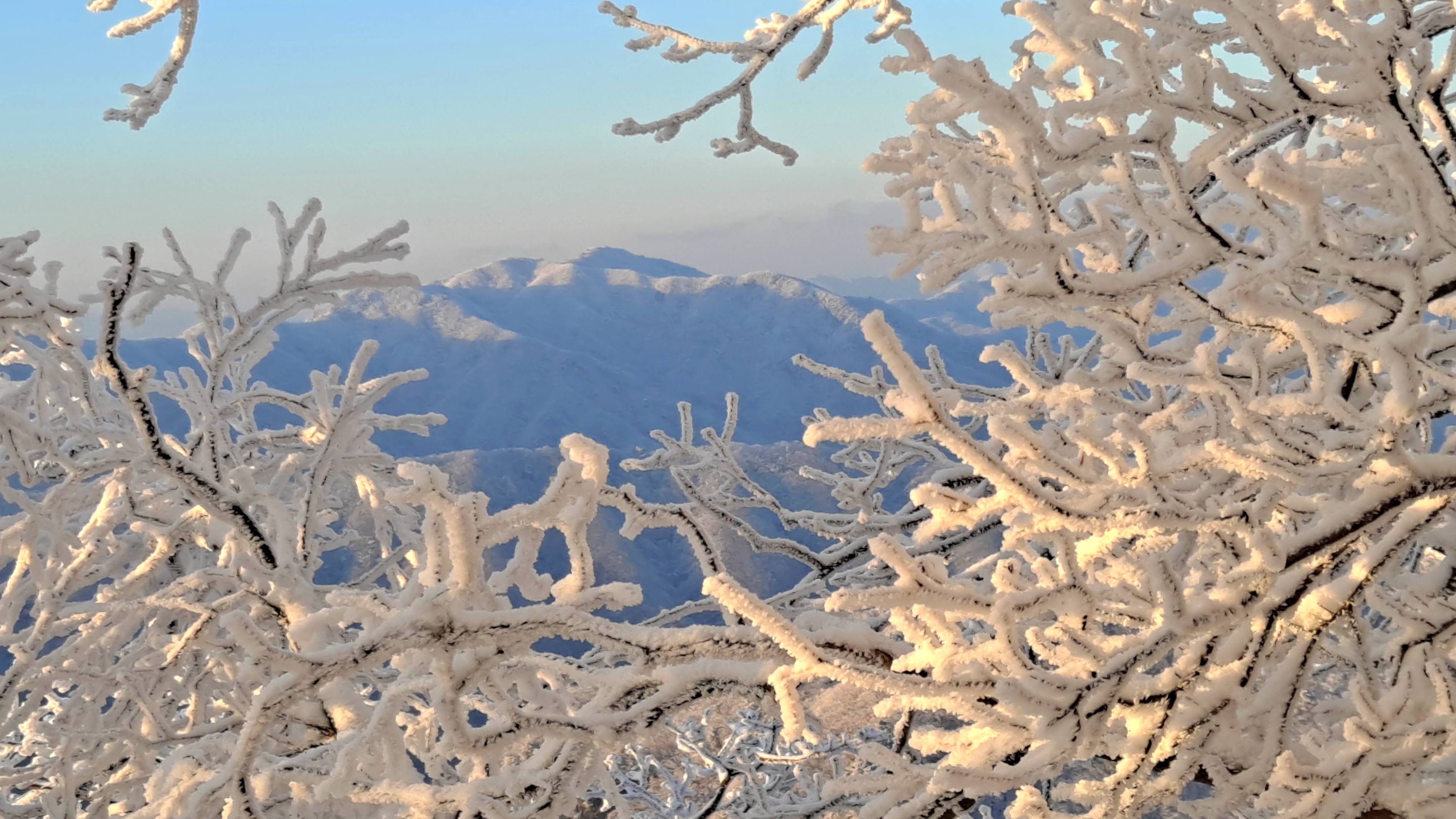 나무가지에 달라붙은 상고대는
