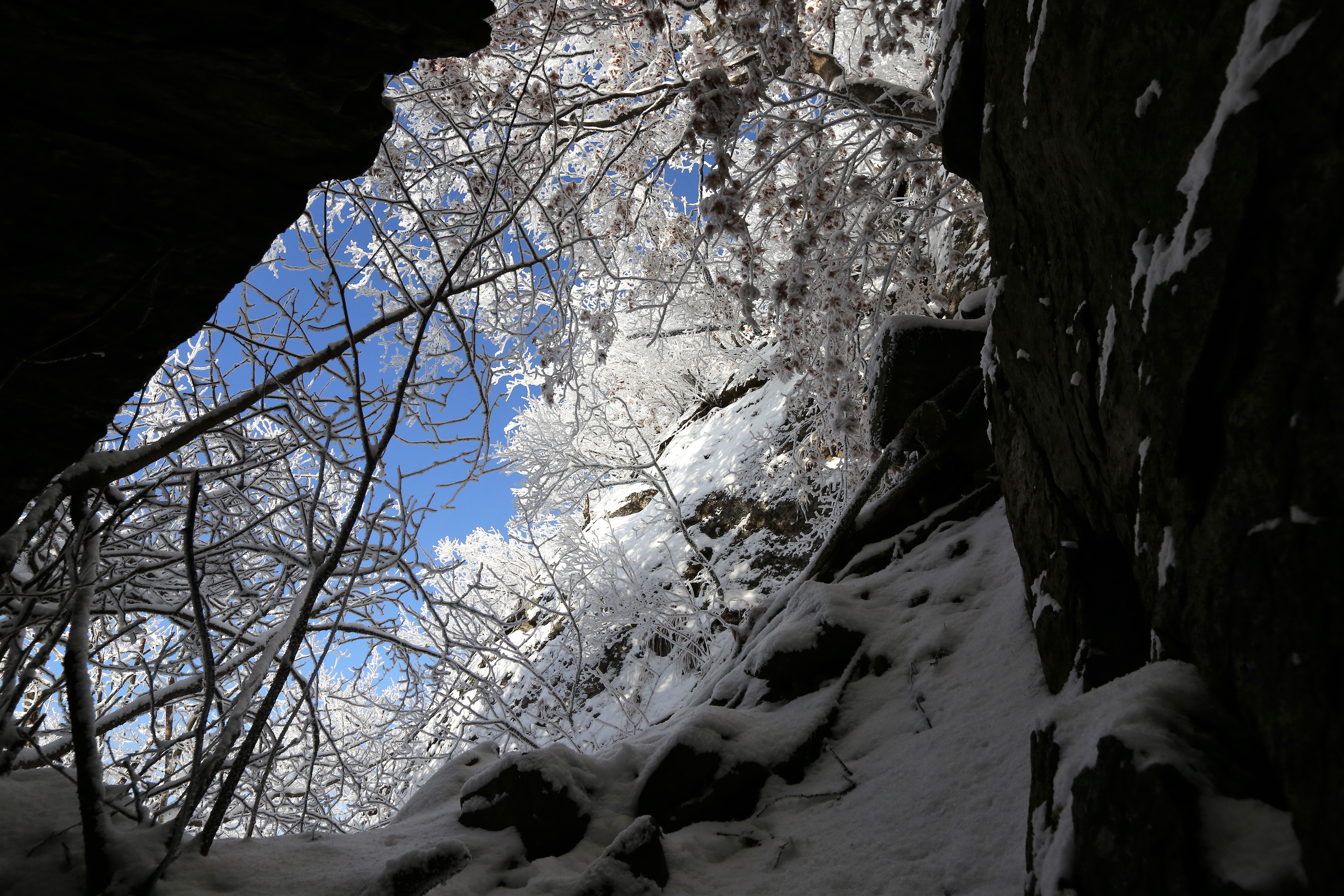 나무가지에 얼어붙은 상고대는