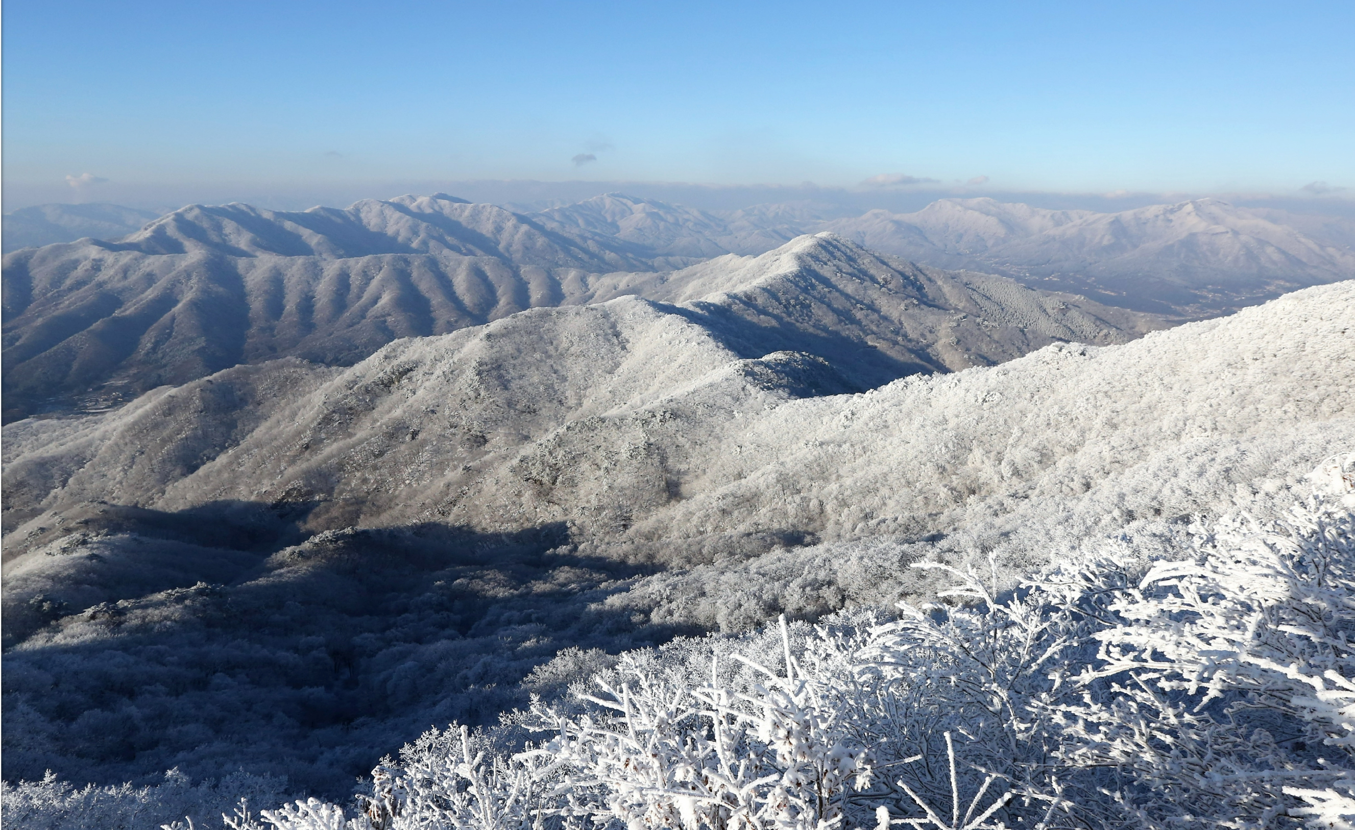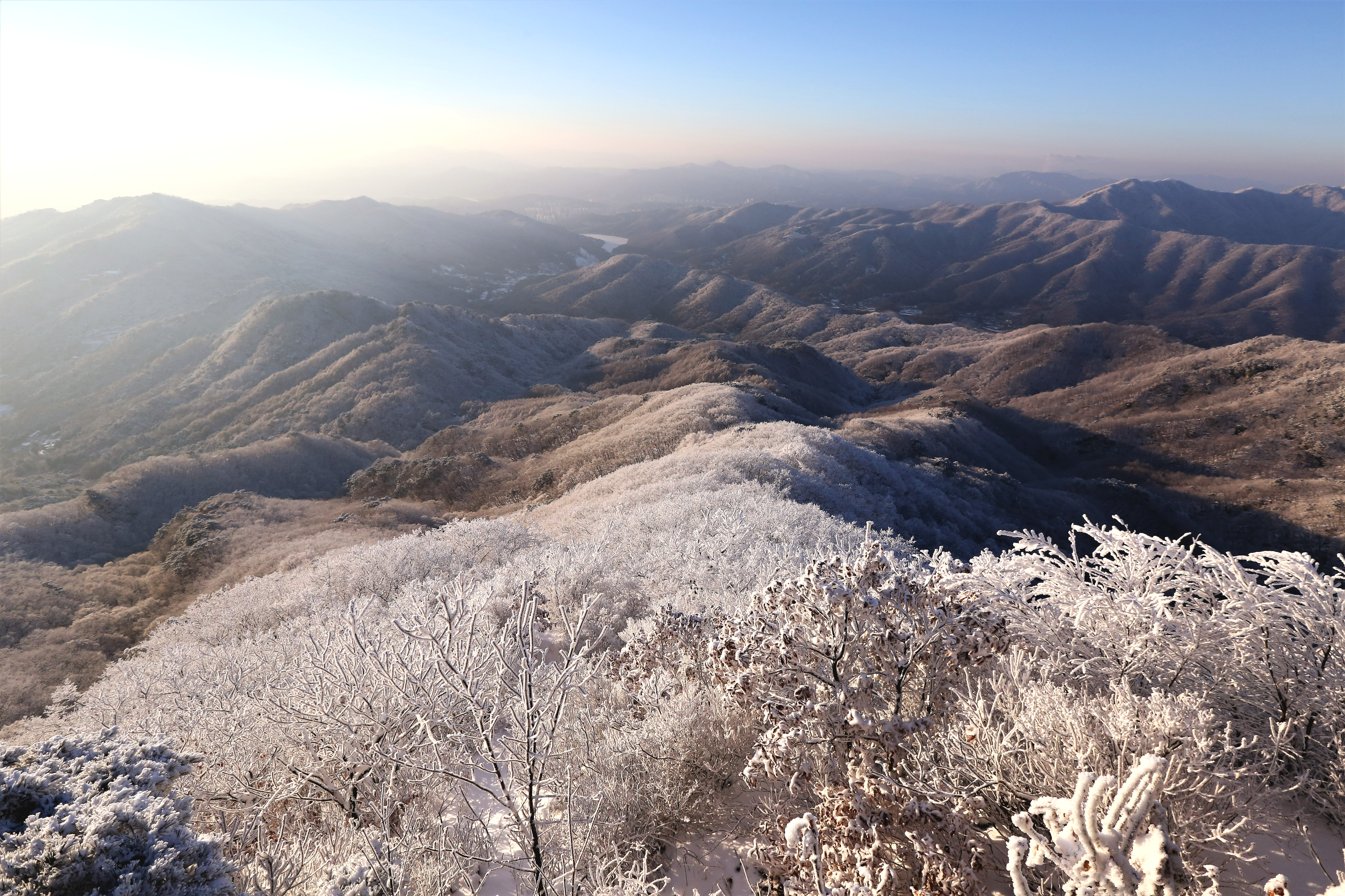맑은날씨에 멀리 보이는 천마산이 하얀 설탕을 뿌려 놓은듯
