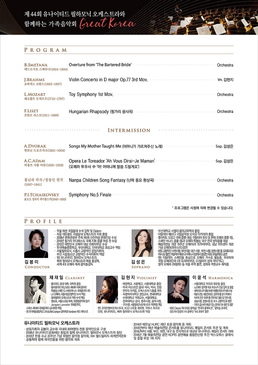 * 상임지휘자 김봉미 교수와 국내외 80여명의 전문 음악인으로 구성