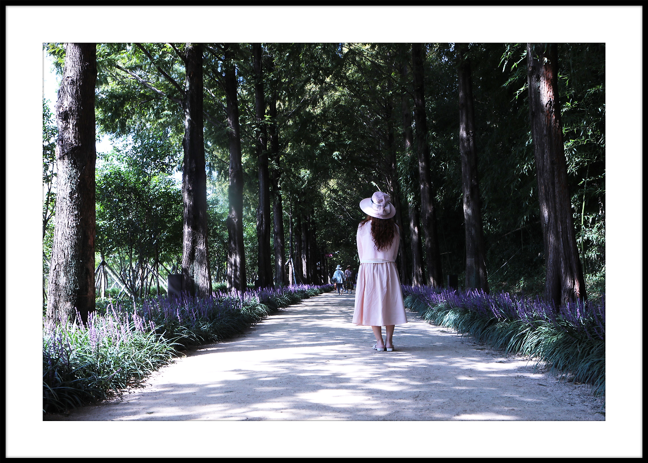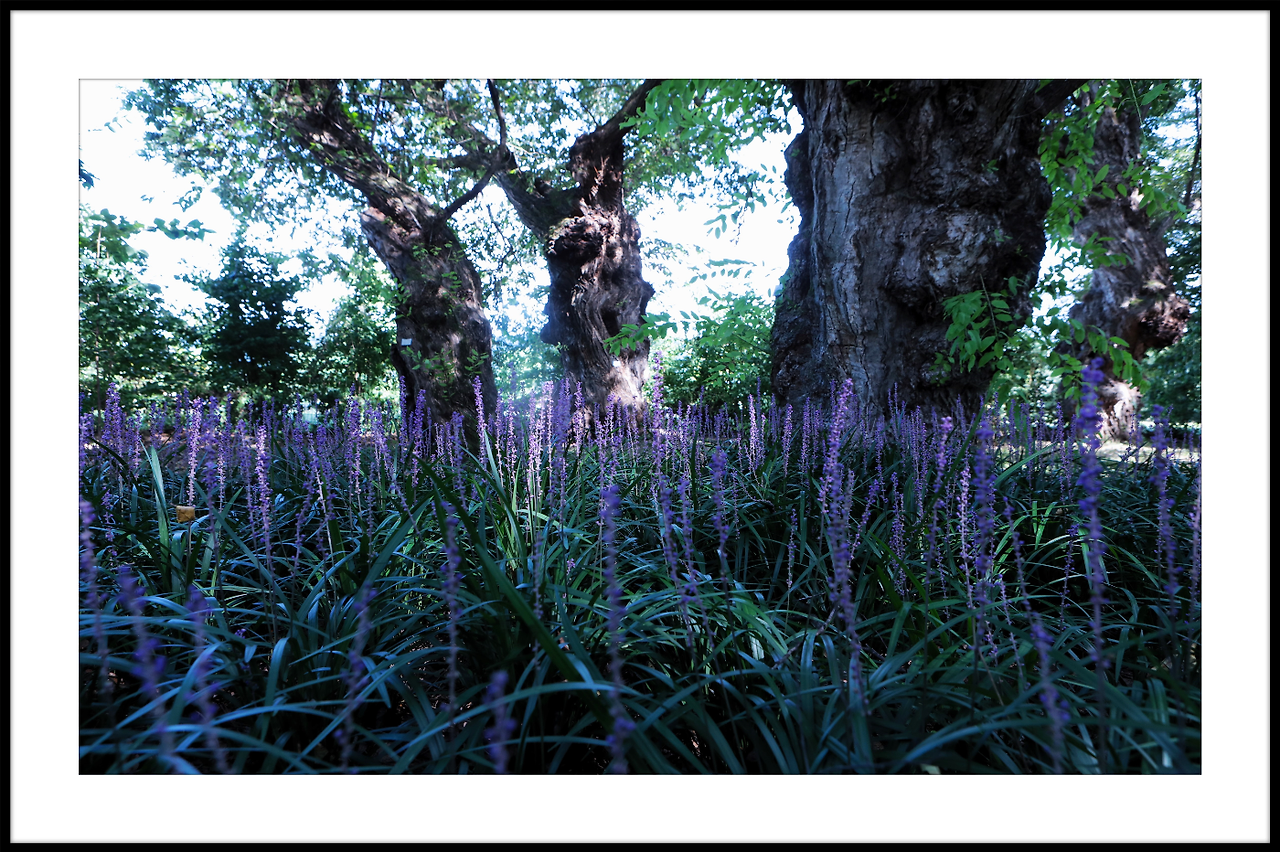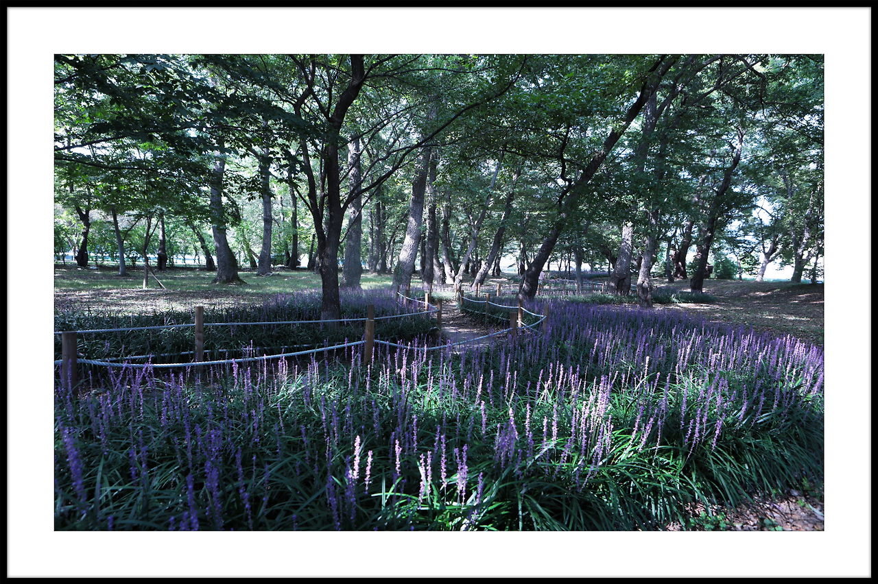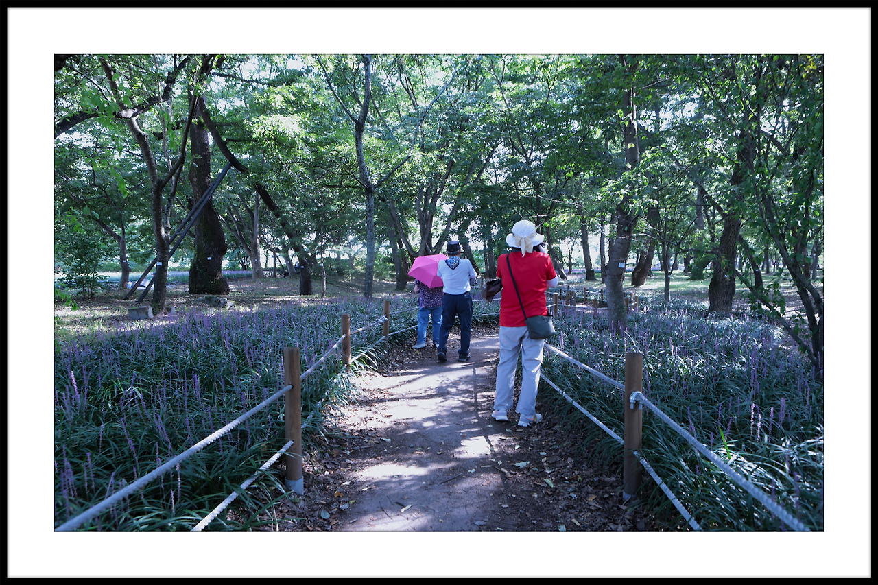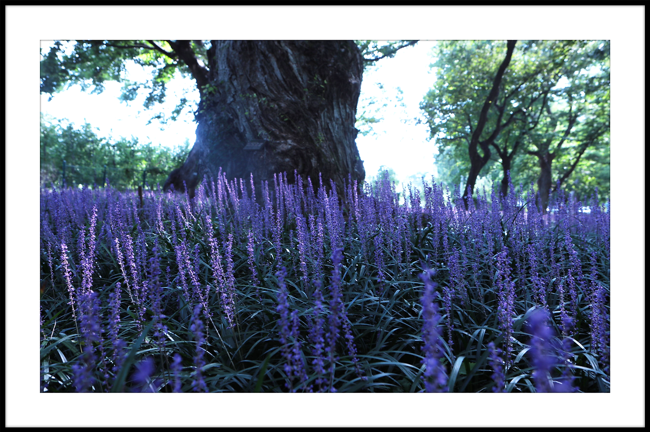 메타쉐콰이어길 안으로 보랏빛 맥문동이