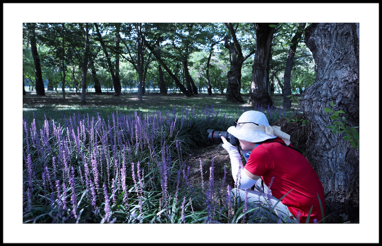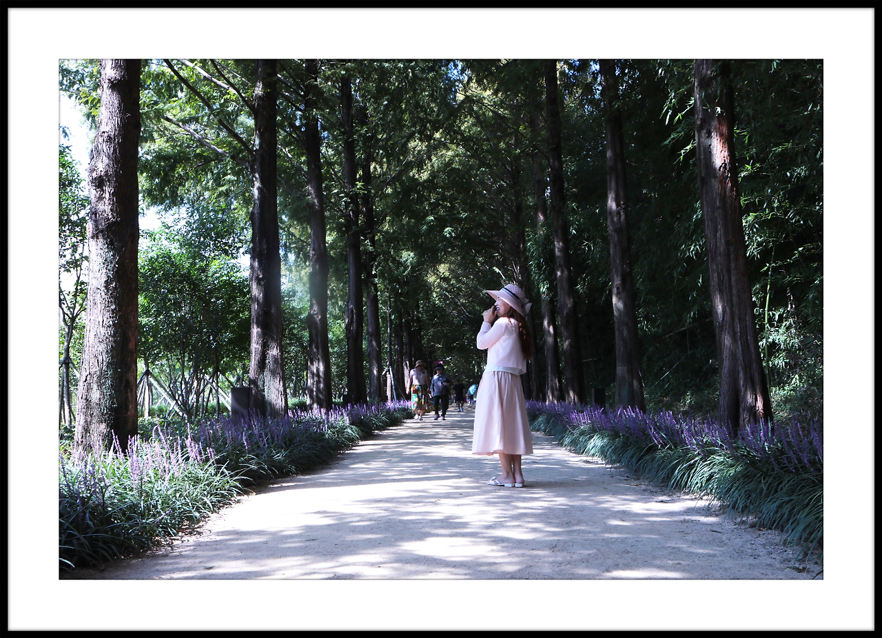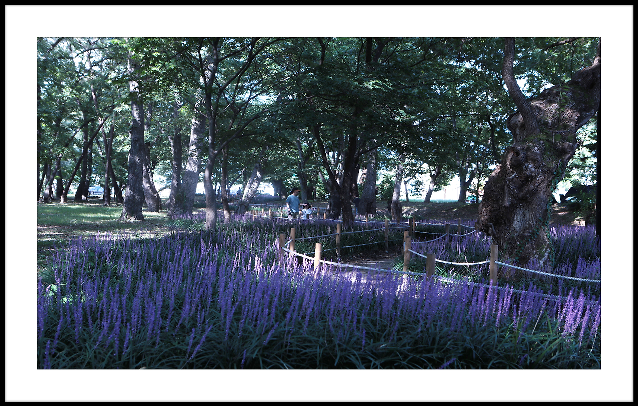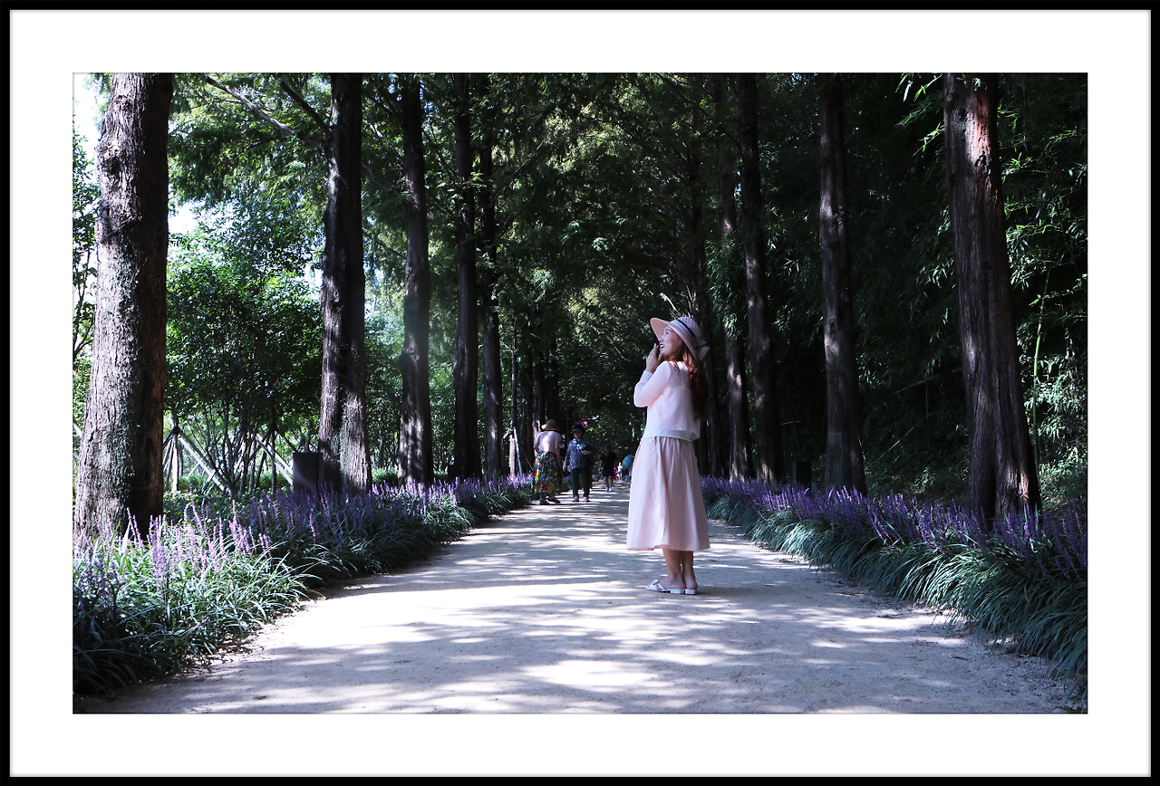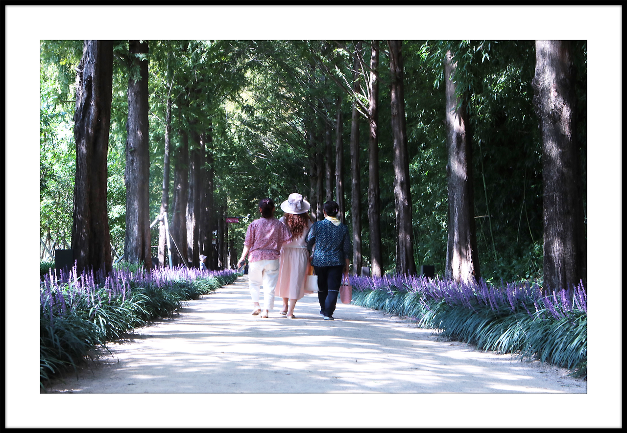 메타쉐콰이어길 안으로 보랏빛 맥문동이