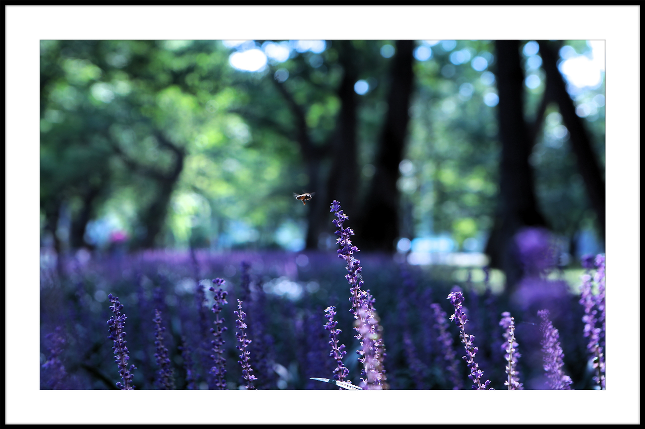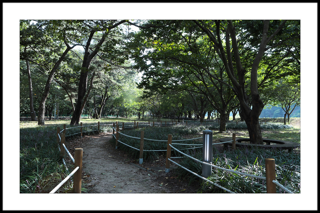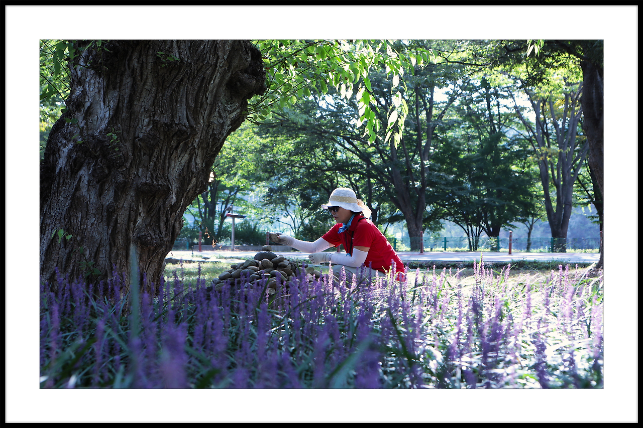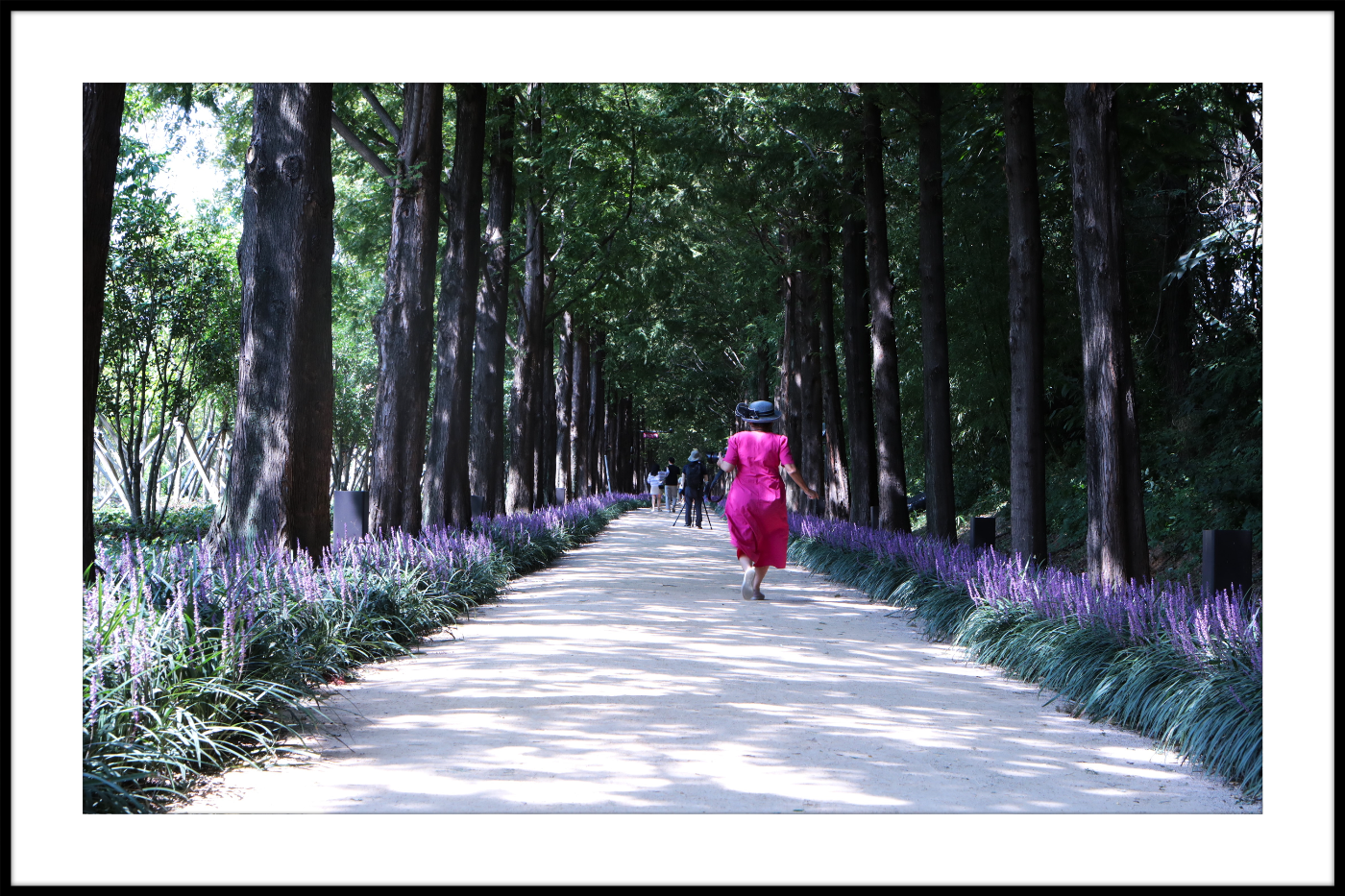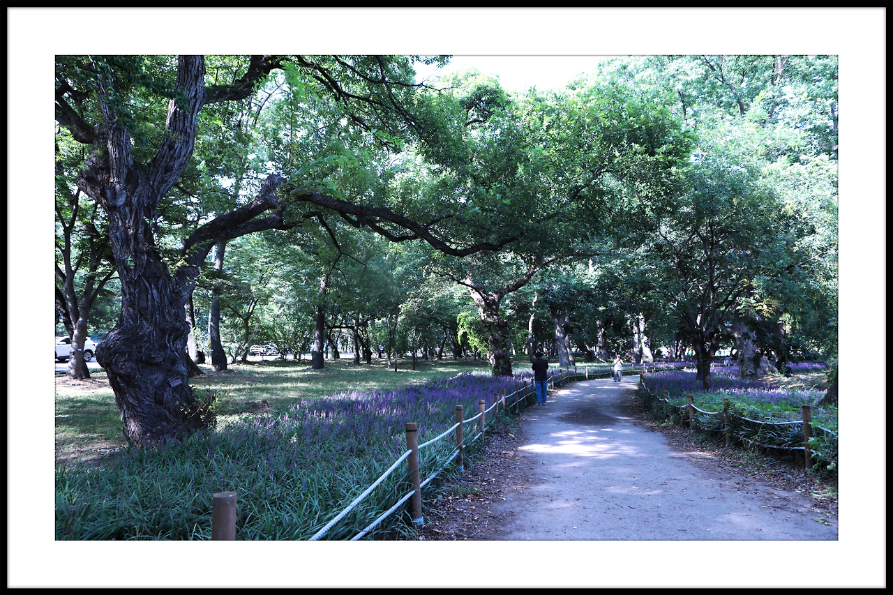 메타쉐콰이어길 안으로 보랏빛 맥문동이