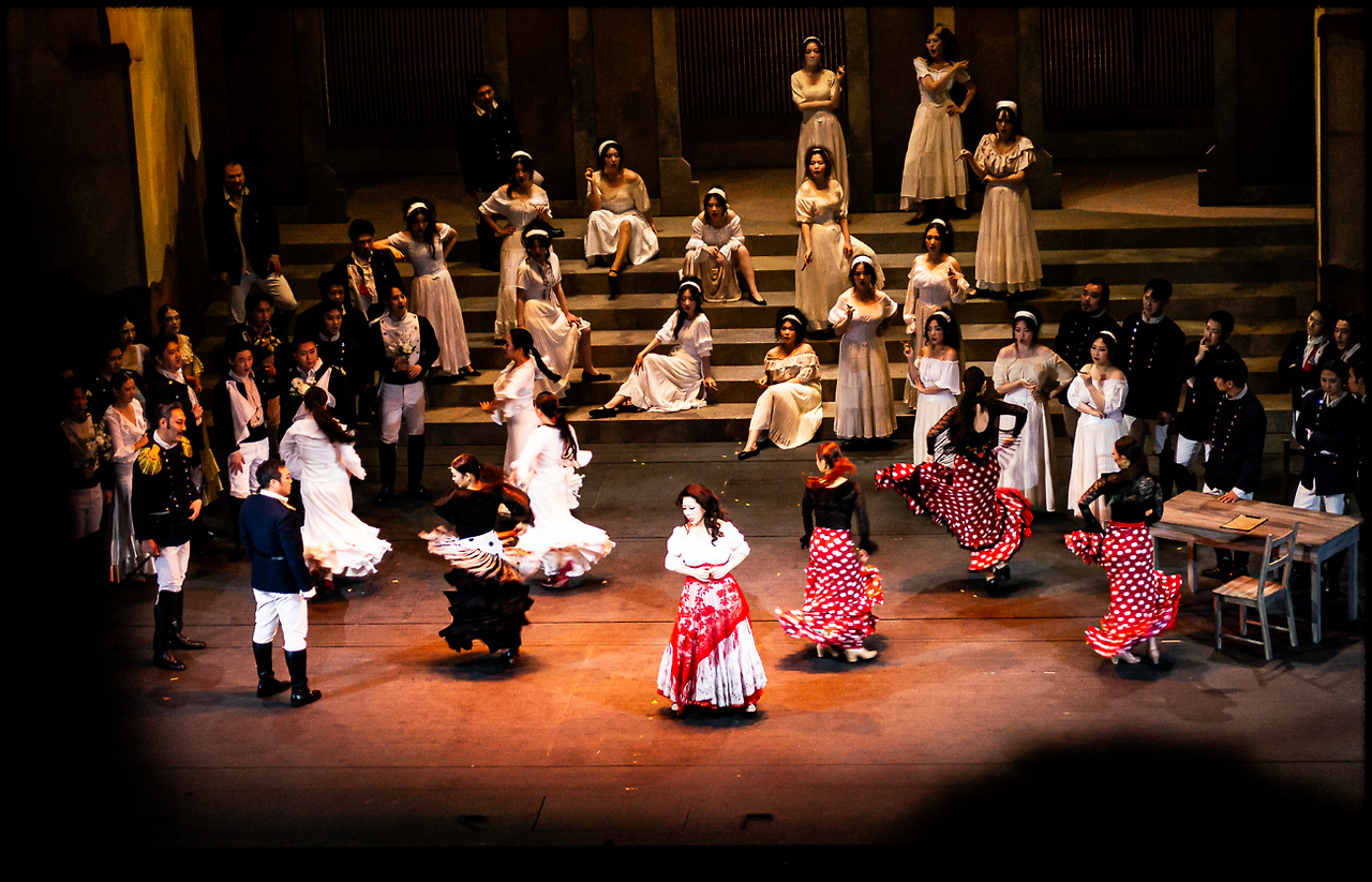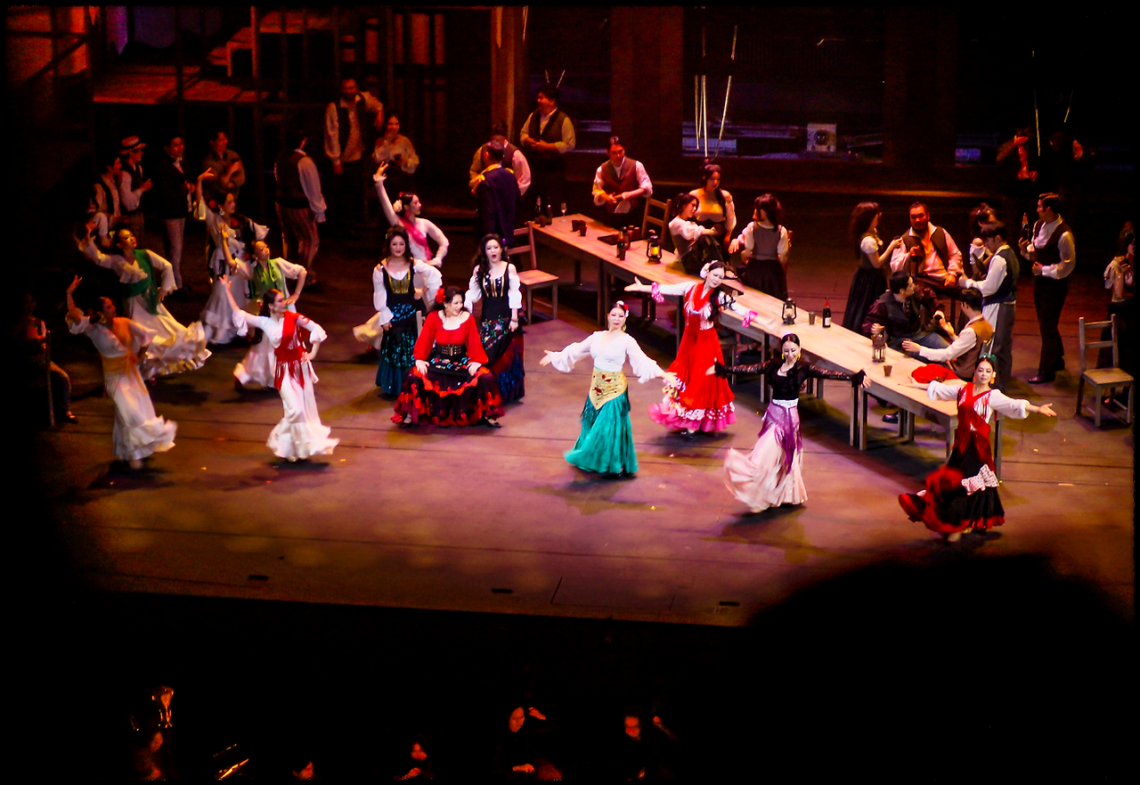 막이 오르기 전에 경쾌한 "투우사의 노래"가 울리고